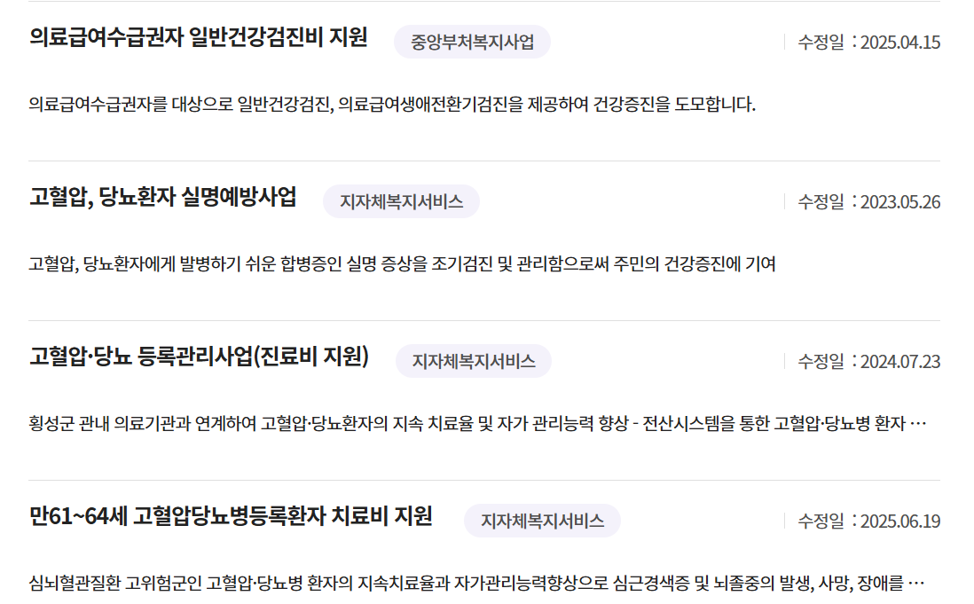 | 신청 자격 | 고혈압·당뇨병 진단자 | 연령·소득 제한 없음 |