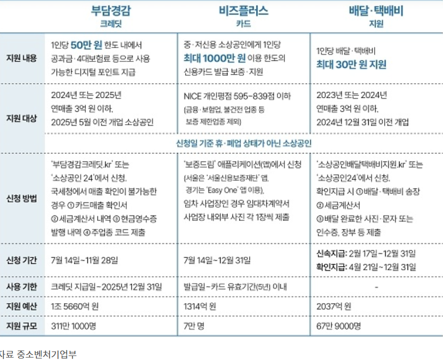 - 신청방법: 부담경감크레딧.kr, 소상공인24, 중소벤처기업부 누리집에서 온라인 신청