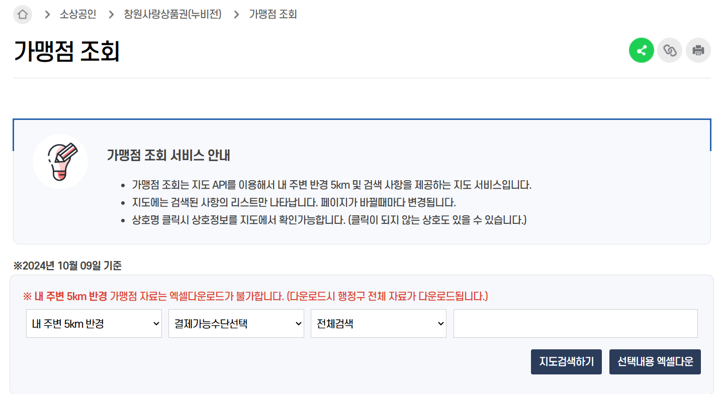 - 전국 모든 지역화폐 가맹점 검색 가능 (창원 지역 선택)