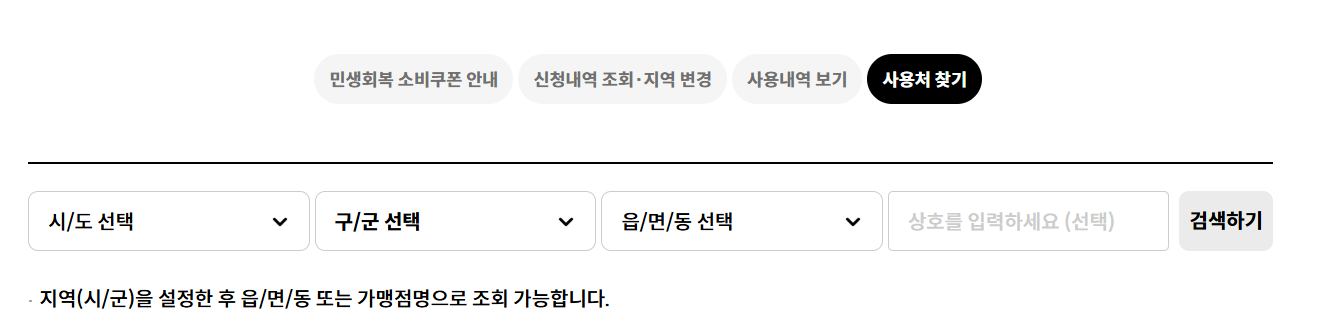 전국 소비쿠폰·지역사랑상품권 사용처 조회