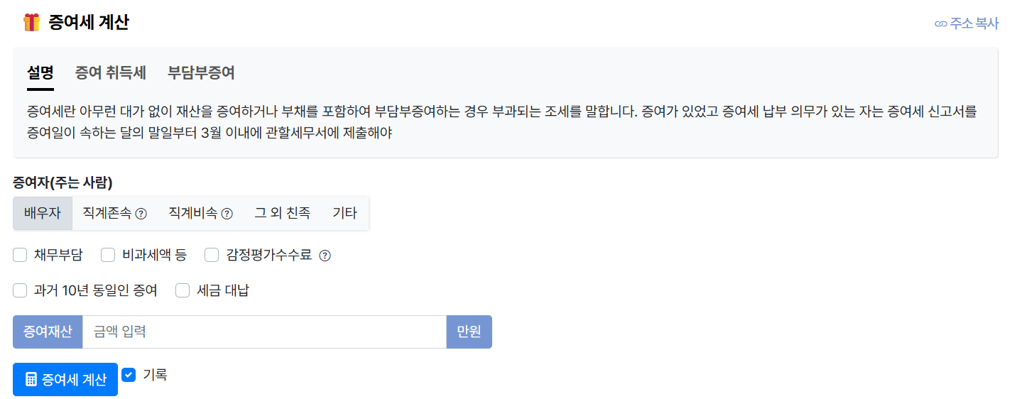 요즘은 “증여세 계산기”가 있어, 원하는 금액만 입력하면 자동으로 내 세금을 확인할 수 있습니다.