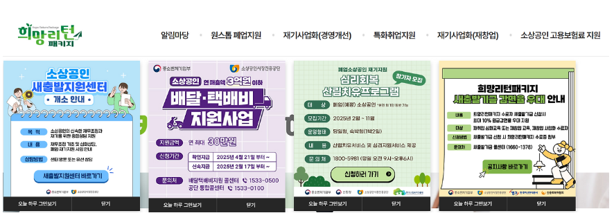 - 신청: 희망리턴패키지 홈페이지 ‘원스톱 폐업지원’ 메뉴에서 온라인 신청